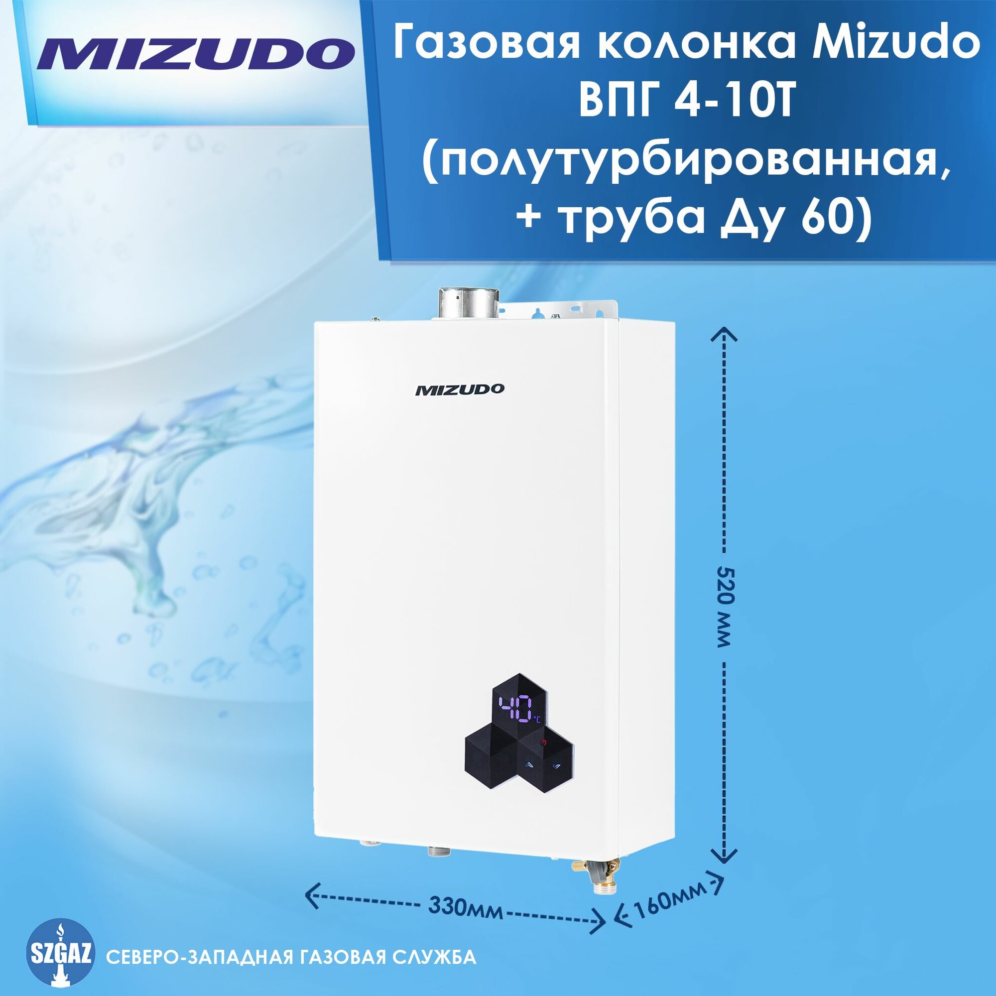 Газовая колонка MIZUDO 4-10, 10л/мин, труба 60х630