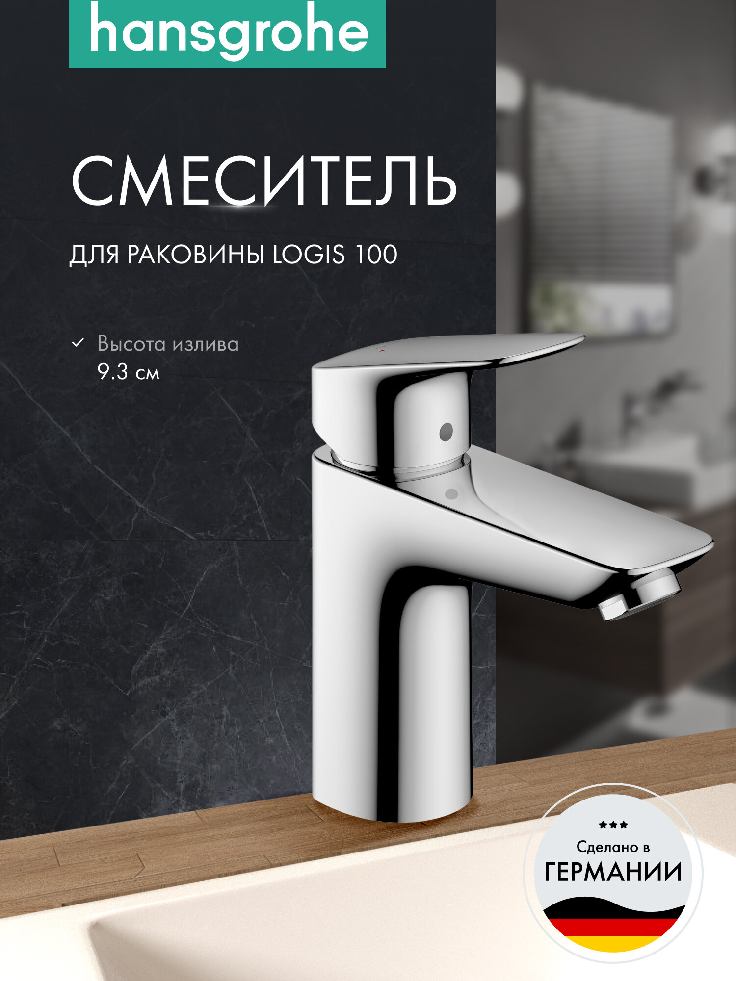 Смеситель для раковины Hansgrohe Logis 100, однорычажный, со сливным гарнитуром, хром 71100000
