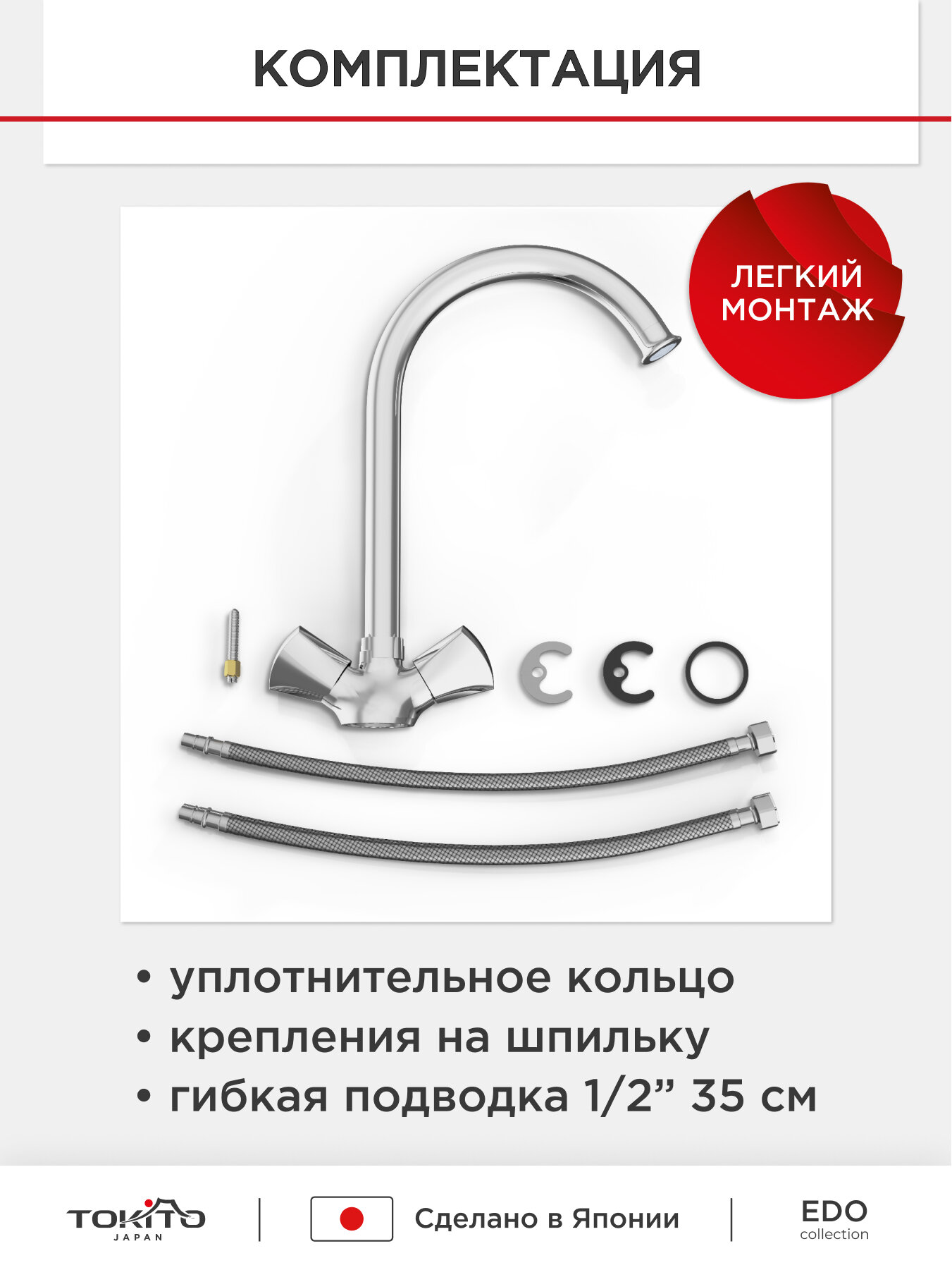 Смеситель для кухни Tokito Edo хром с высоким изливом двухвентильный (TOK-EDO-1012)