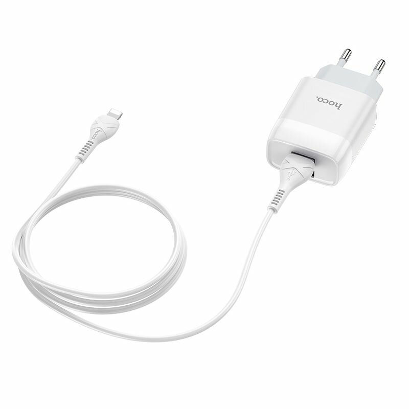 Сетевое зарядное устройство USB Hoco C73A (2.4A/2 порта/кабель Lightning) <белый>