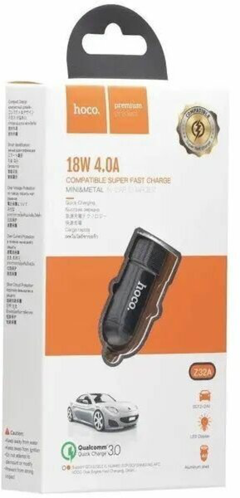 Автомобильная зарядка HOCO Z32A QC3.0, USB, 5V, 4.0A, 18W, черный