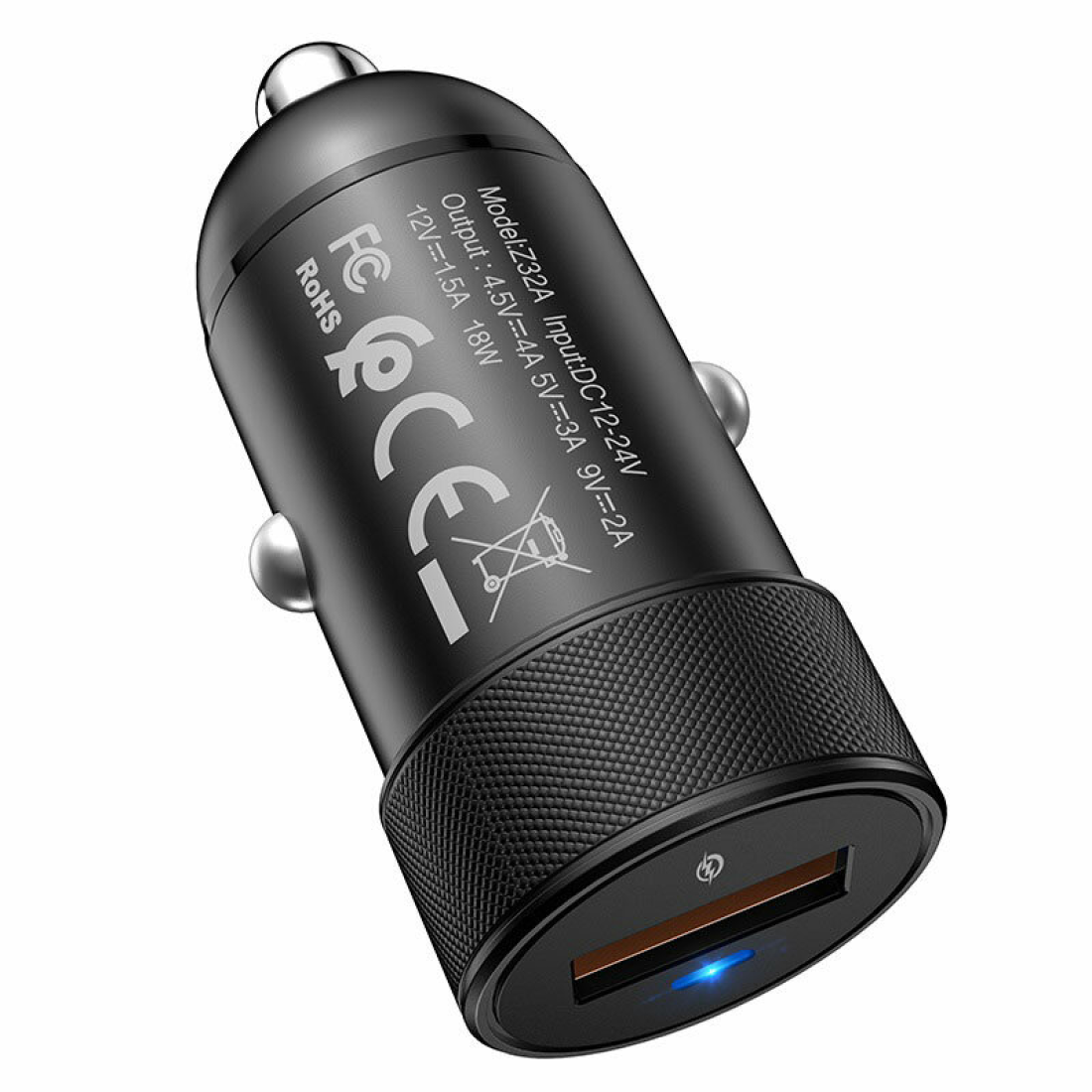 Car charging / Автомобильная зарядка (от прикуривателя) HOCO Z32A QC3.0, один порт USB, 5V, 4.0A, 18W, черная