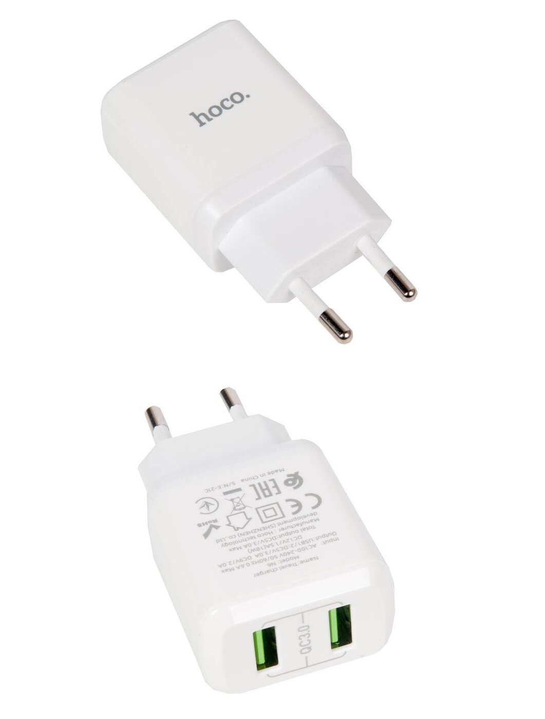 СЗУ, 2 USB 3.0QC 18W (N6), HOCO, Type-C, Умная зарядка, белый