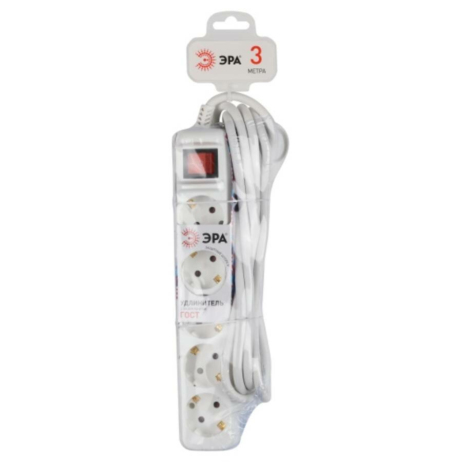 Купить Удлинитель электрический ЭРА U-5es-3m-3x1,5 16А с заземлением с выключателем 5 розеток 3 м белый Б0044044