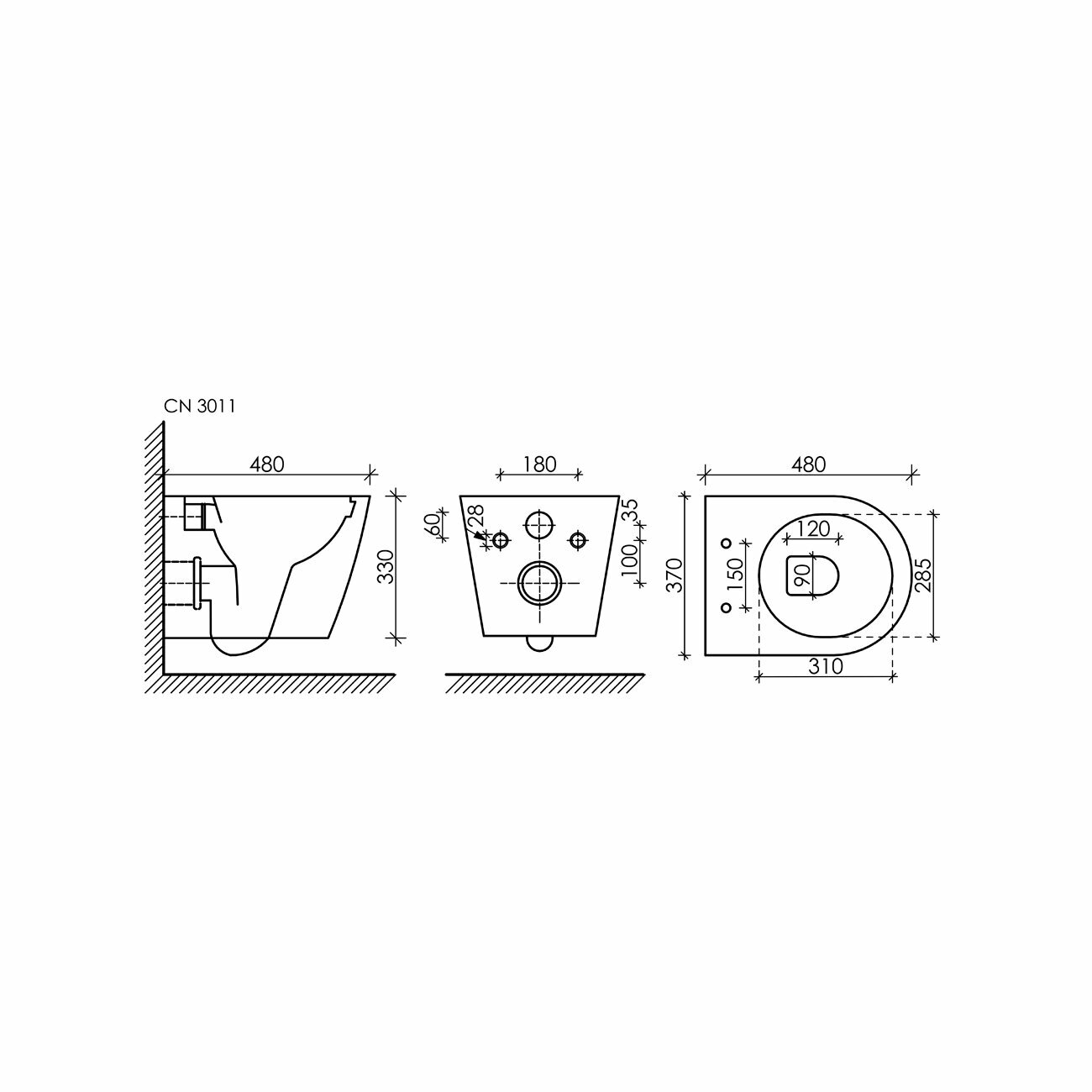 CN3011 Подвесной унитаз FORMA Rimless, с крепежом, с сиденьем-крышкой с микролифтом 480*370*370