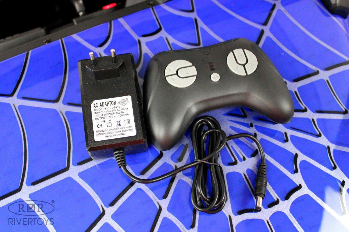 | Дополнительная информация | пульт управления: индивидуальный (настраивается по Bluetooth), работает от двух батареек AAA (1,5 V); сиденье двухместное, кожаное, регулируется вперед/назад; ремень безопасности 3-х точечный - 2шт; кондиционер; редуктор: 4*24V/12.000об/55W |