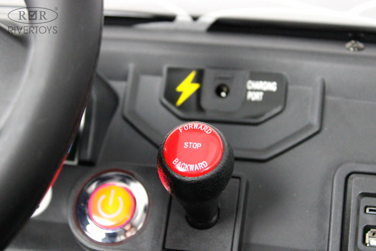 Детский электромобиль RiverToys A707AA 4WD черный карбон с дистанционным управлением, двухместный, полноприводный