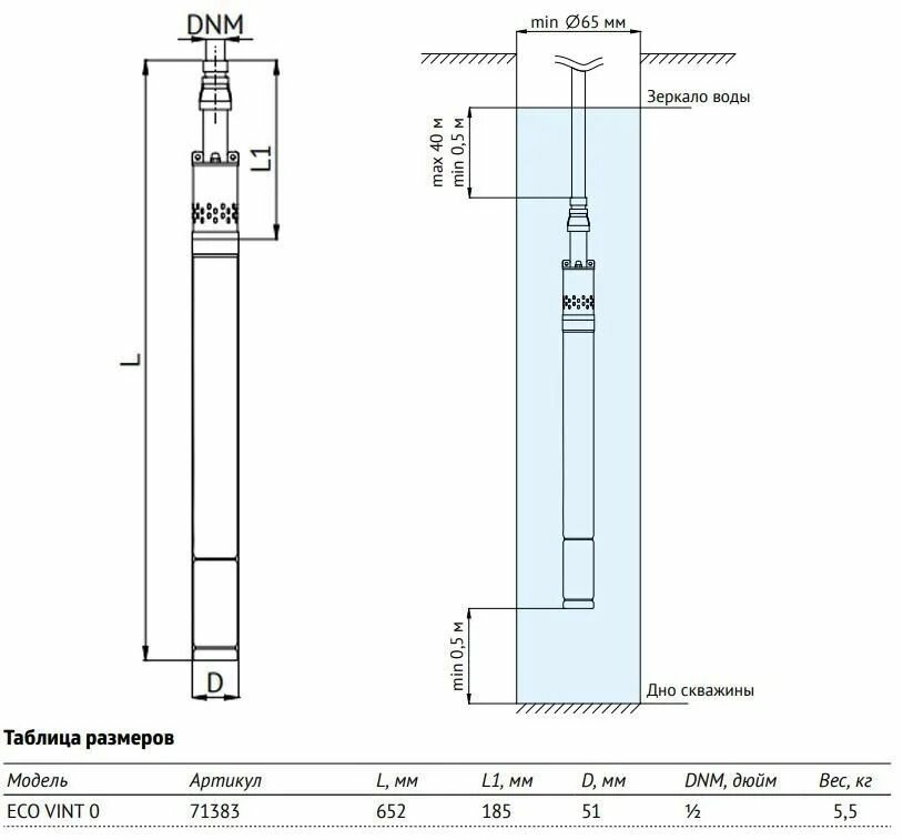 Насос UNIPUMP ECO VINT 0 верхний забор, 20 м, термозащита, нерж. сталь