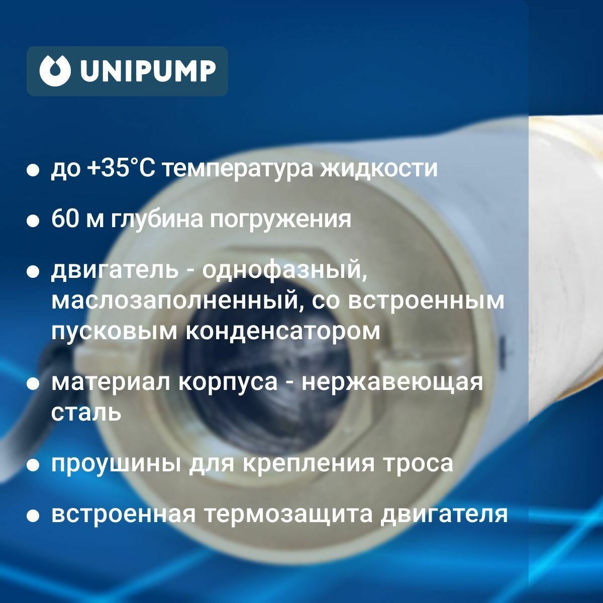 Насос для воды скважинный погружной Unipump БЦП 3,5-0,5-65 В 45 м с вилкой
