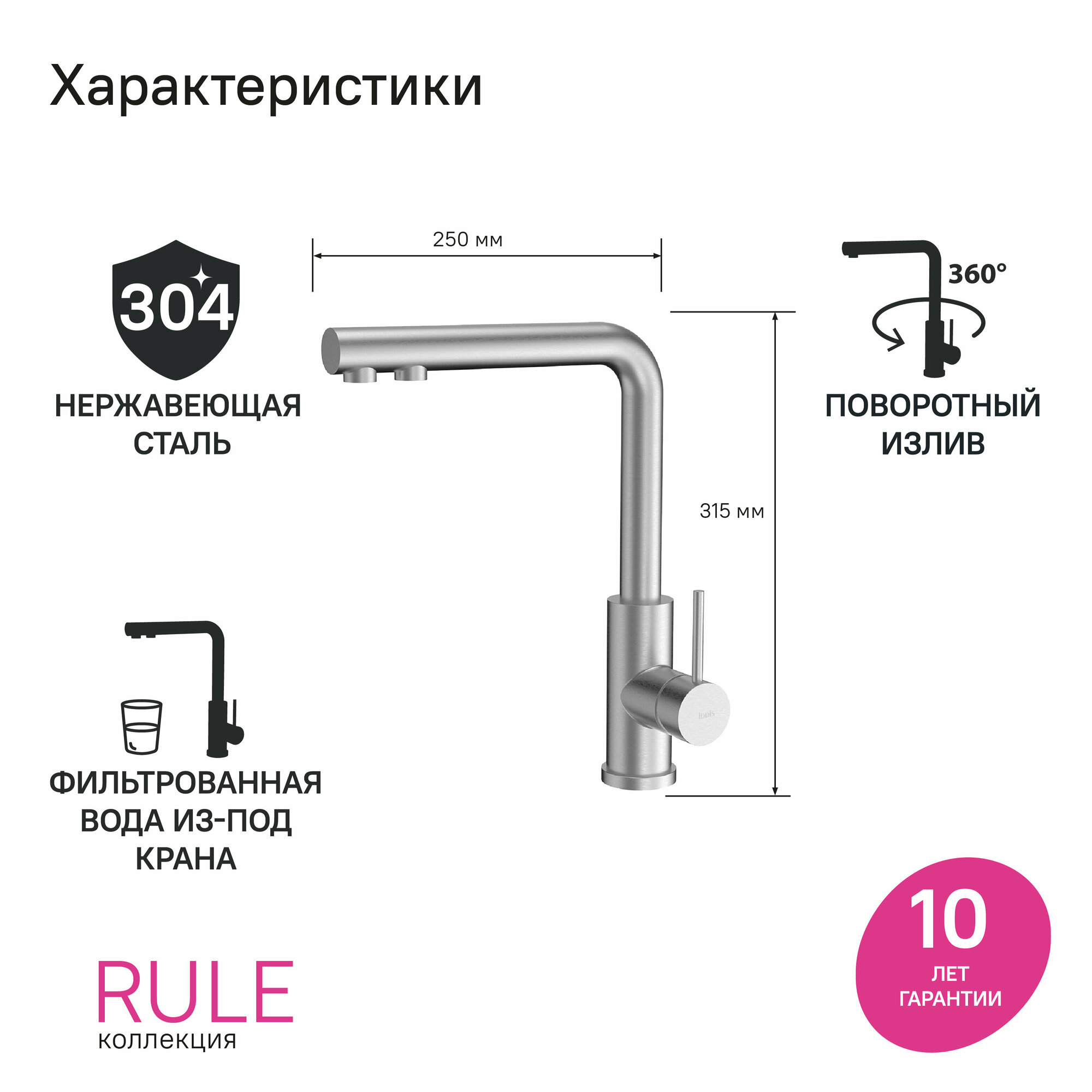 Купить Смеситель IDDIS для кухни с фильтром сталь Rule (RULSTLFi05)