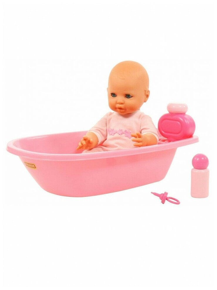 Купить Пупс "Забавный" (35 см) с соской + ванночка и набор для купания (2 элемента) (в коробке)