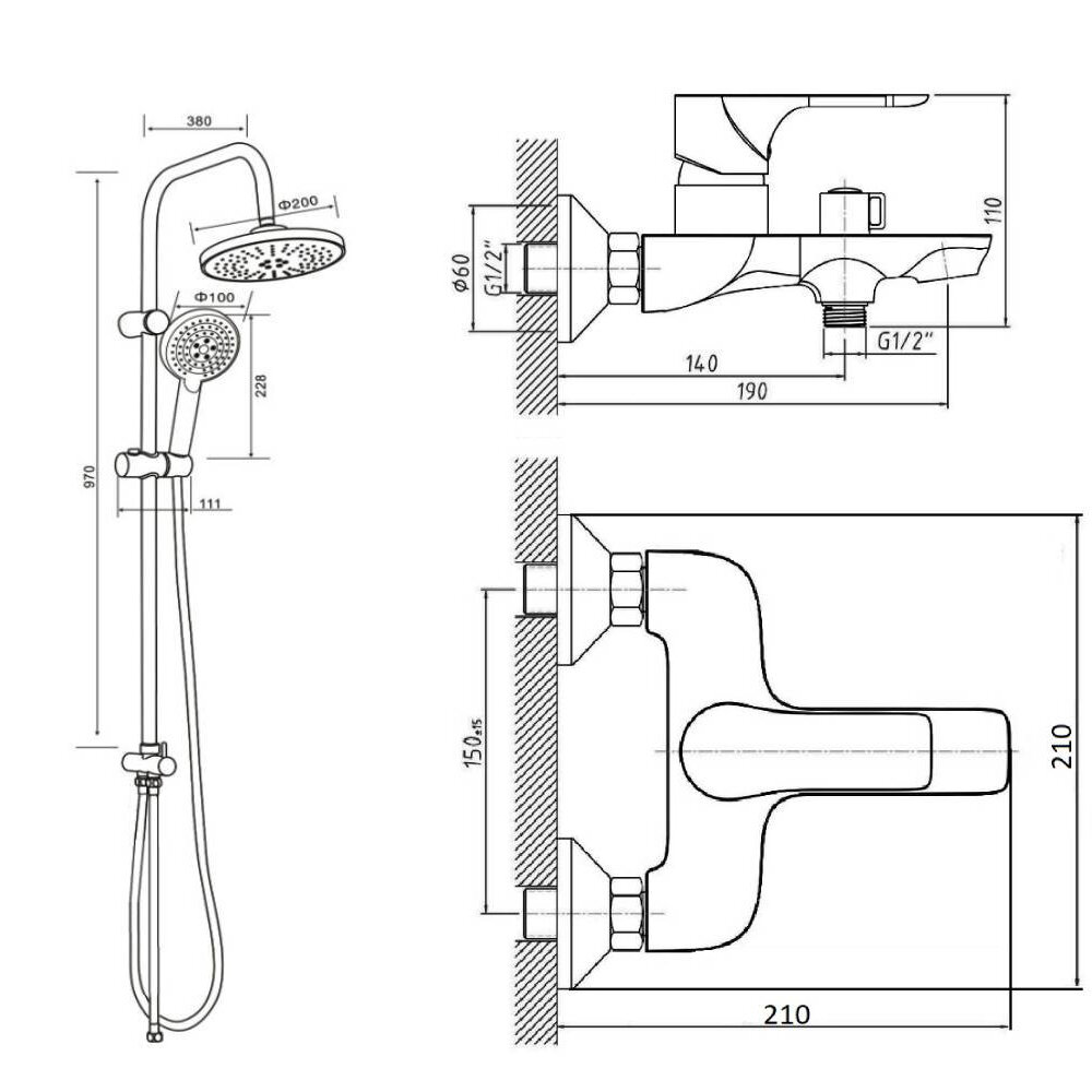| Комплектация | Верхний душ;Держатель для лейки;Душевая лейка;Душевая штанга;Смеситель;Шланг для душа;Шланговое подключение |