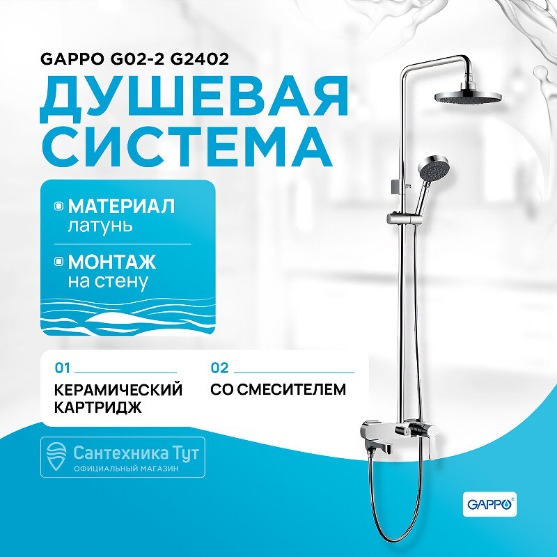 Купить Душевая система 35к G2402 GAPPO лейка "Тропический душ" хром