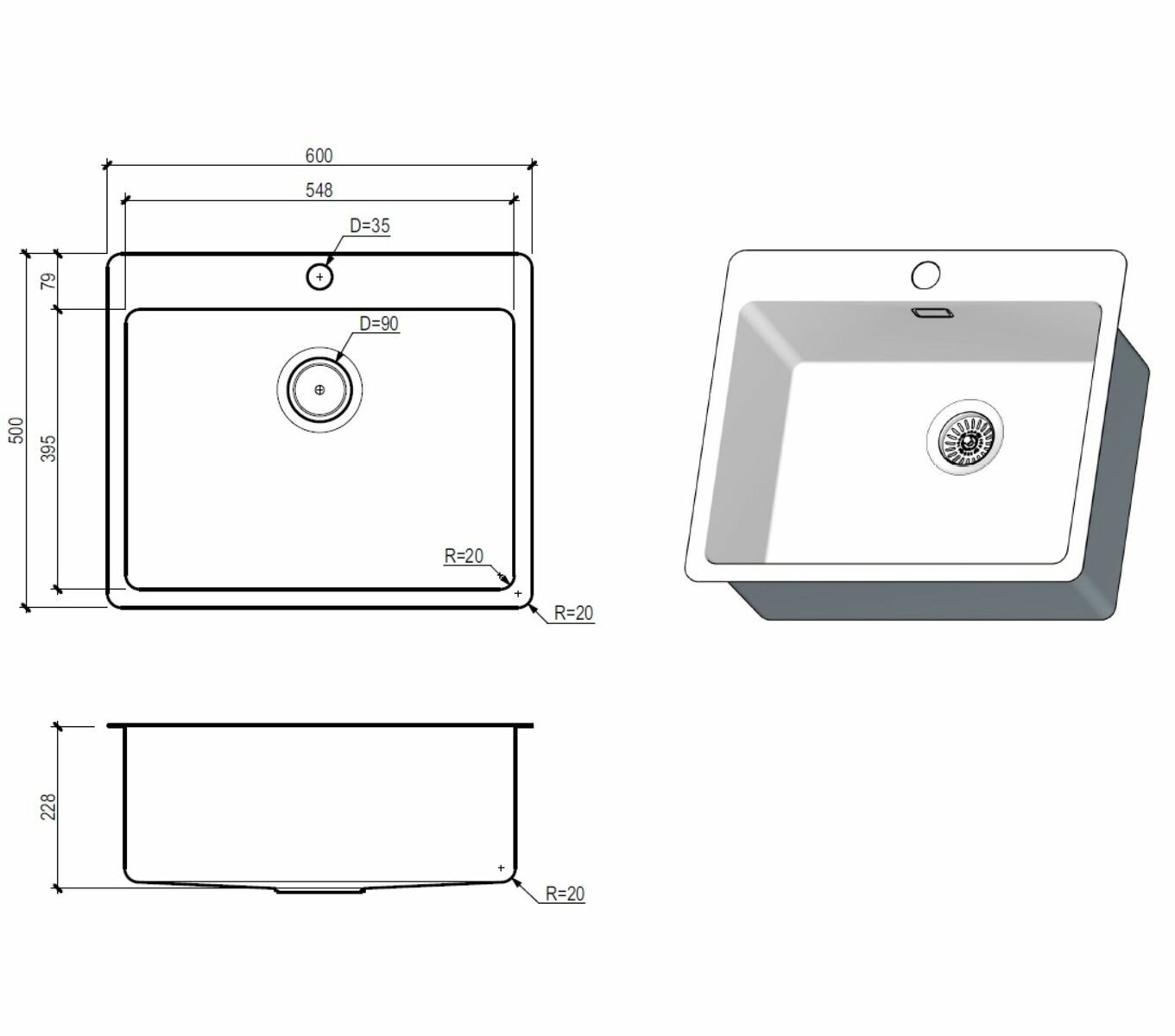 Мойка кухонная TopZero Micro ME600.500
