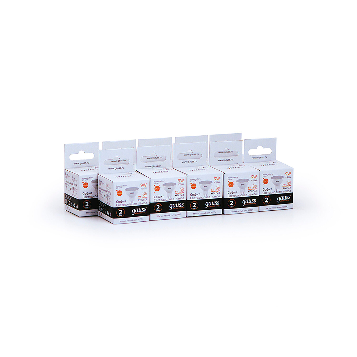 (6 шт.) Светодиодная лампочка Gauss MR16 9Вт 220В 2700K-3000К GU5.3