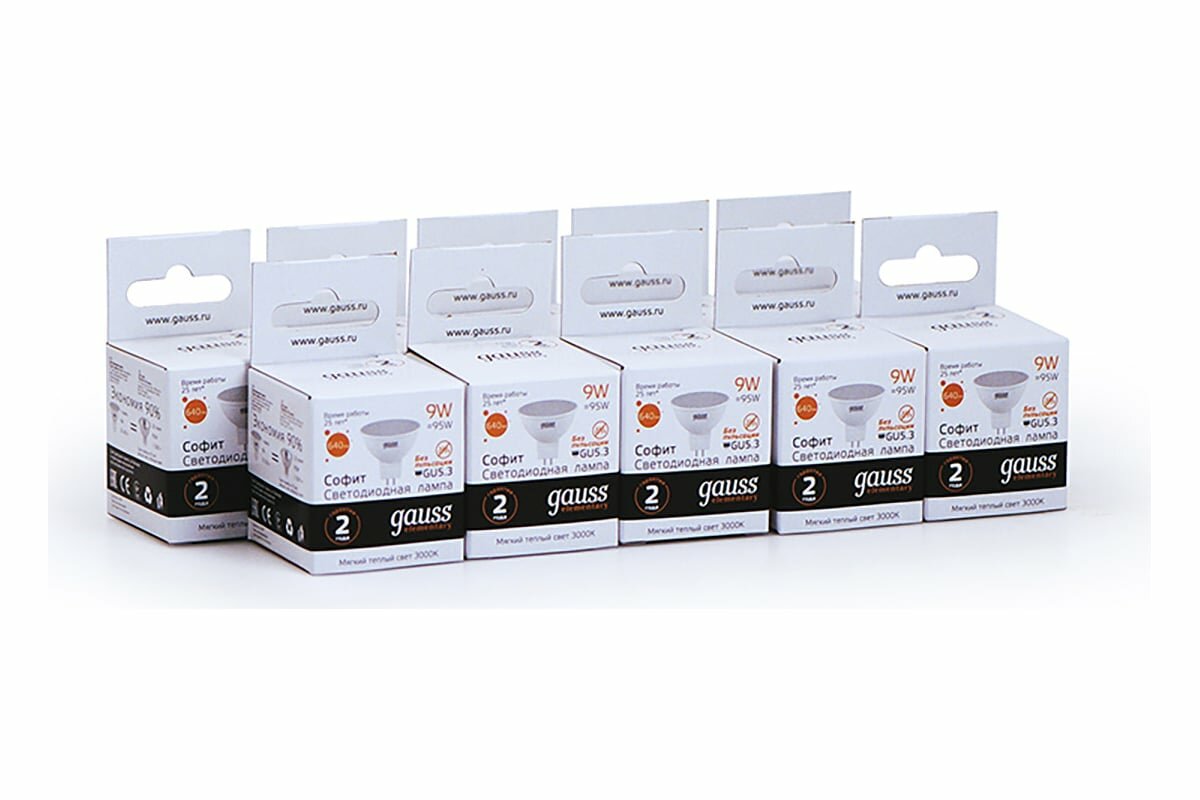 (5 шт)Лампа Gauss Elementary MR16 9W 640lm 3000K GU5.3 LED 1/10/100