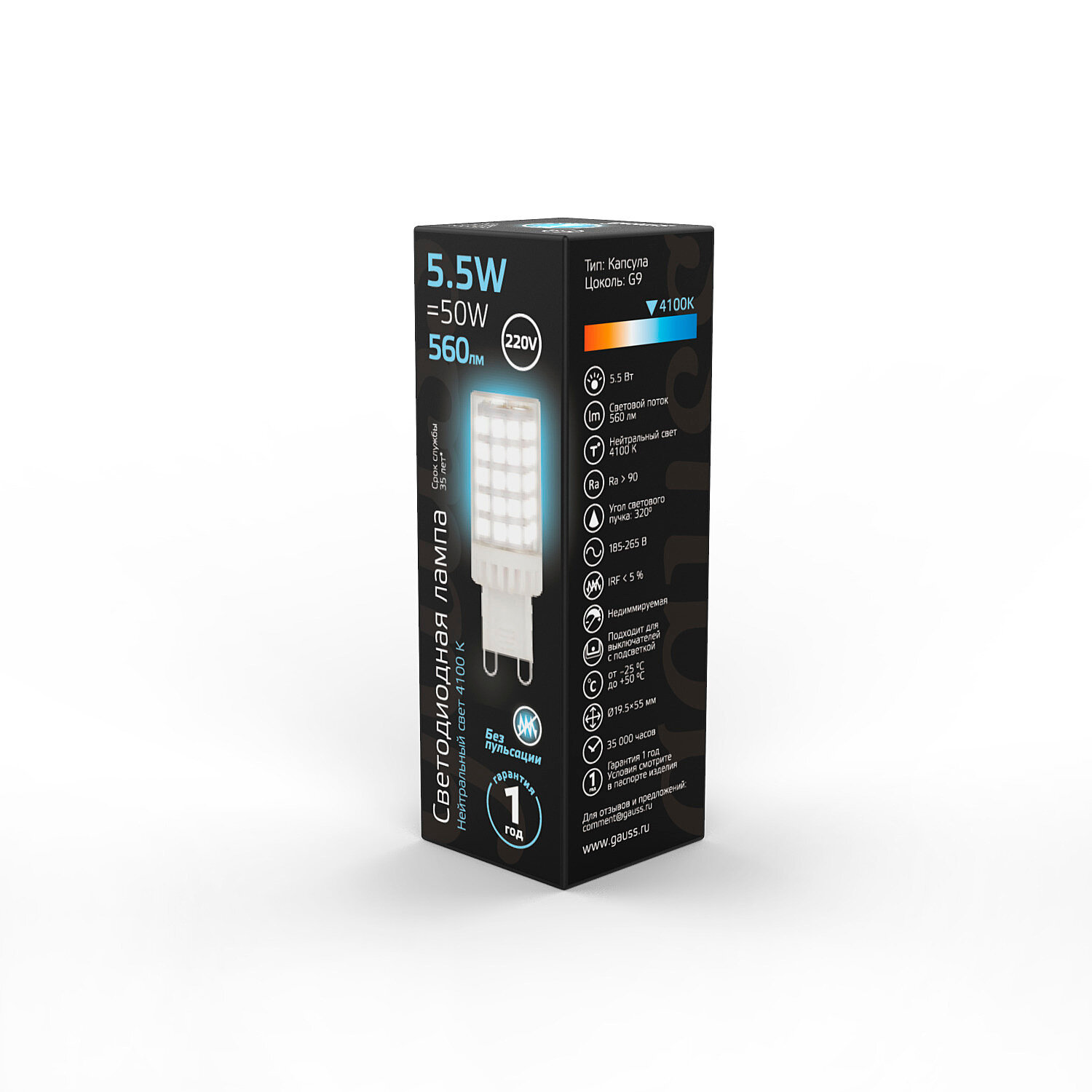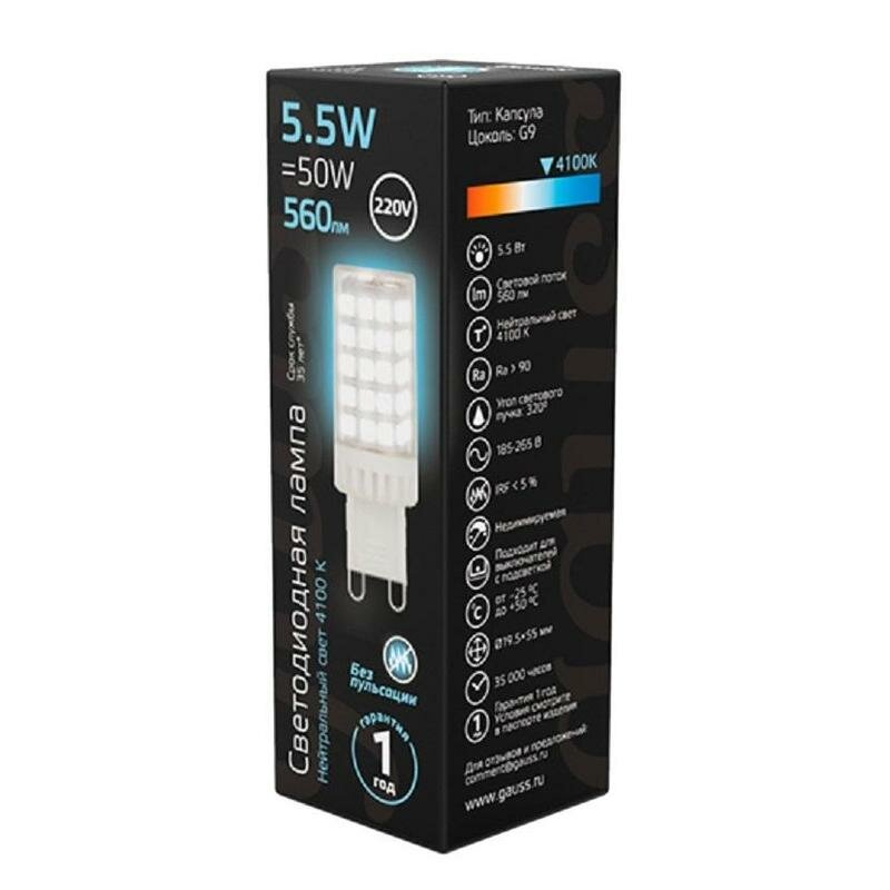 Купить Лампа Gauss G9 AC185-265V 5,5W 560lm 4100K керамика LED 1/10/200
