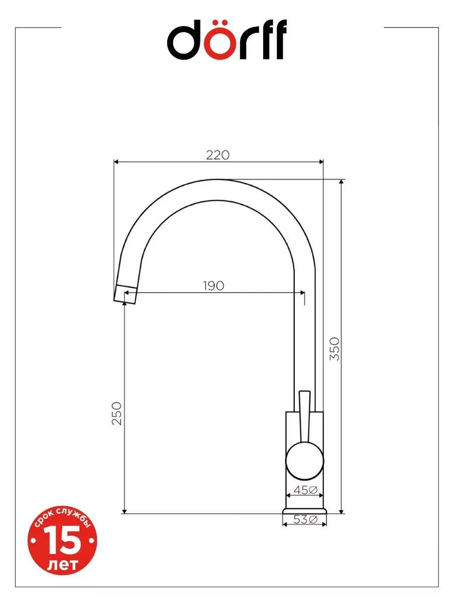 Купить Смеситель для кухни DORFF Logic D3000000 высокий поворотный излив 250 мм, Германия, нержавеющая сталь