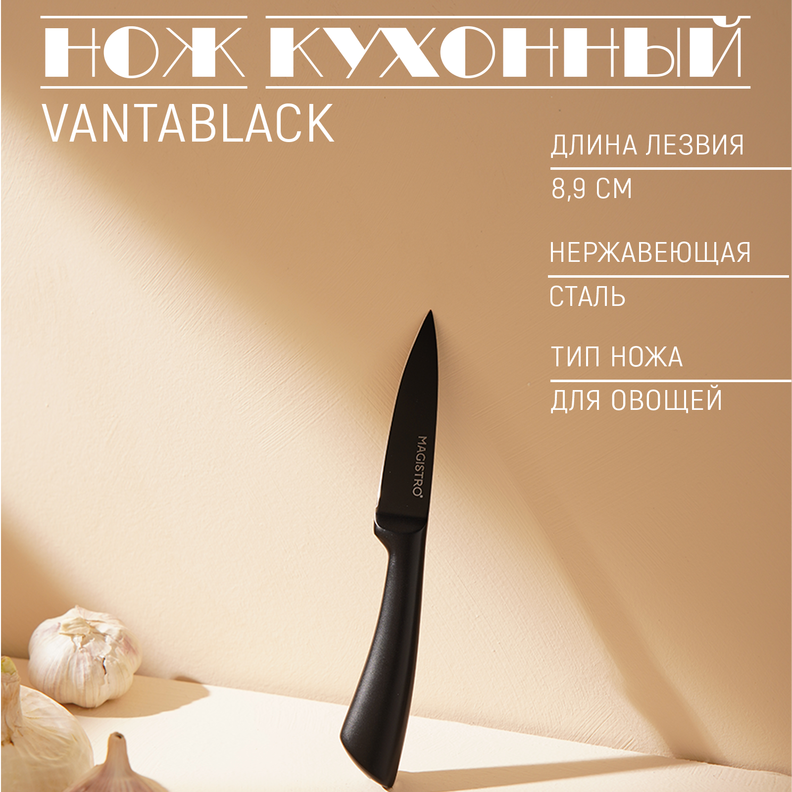 Нож кухонный Magistro "Vantablack", для овощей, длина лезвия 8,9 см, цвет чёрный