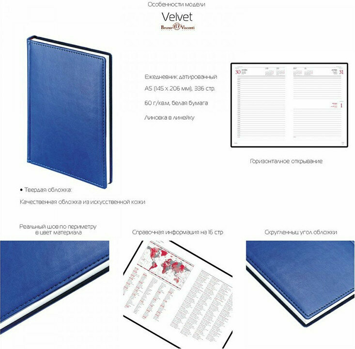 Ежедневник недатированный Bruno Visconti "VELVET ", Soft touch, темно-синий А5, Арт. 3-115/18