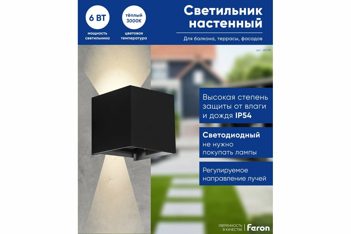 СохранитьFeron Светильник уличный светодиодный Dh012, 2x3W, 450Lm, 3000K, черный, 48098 . интересное:
