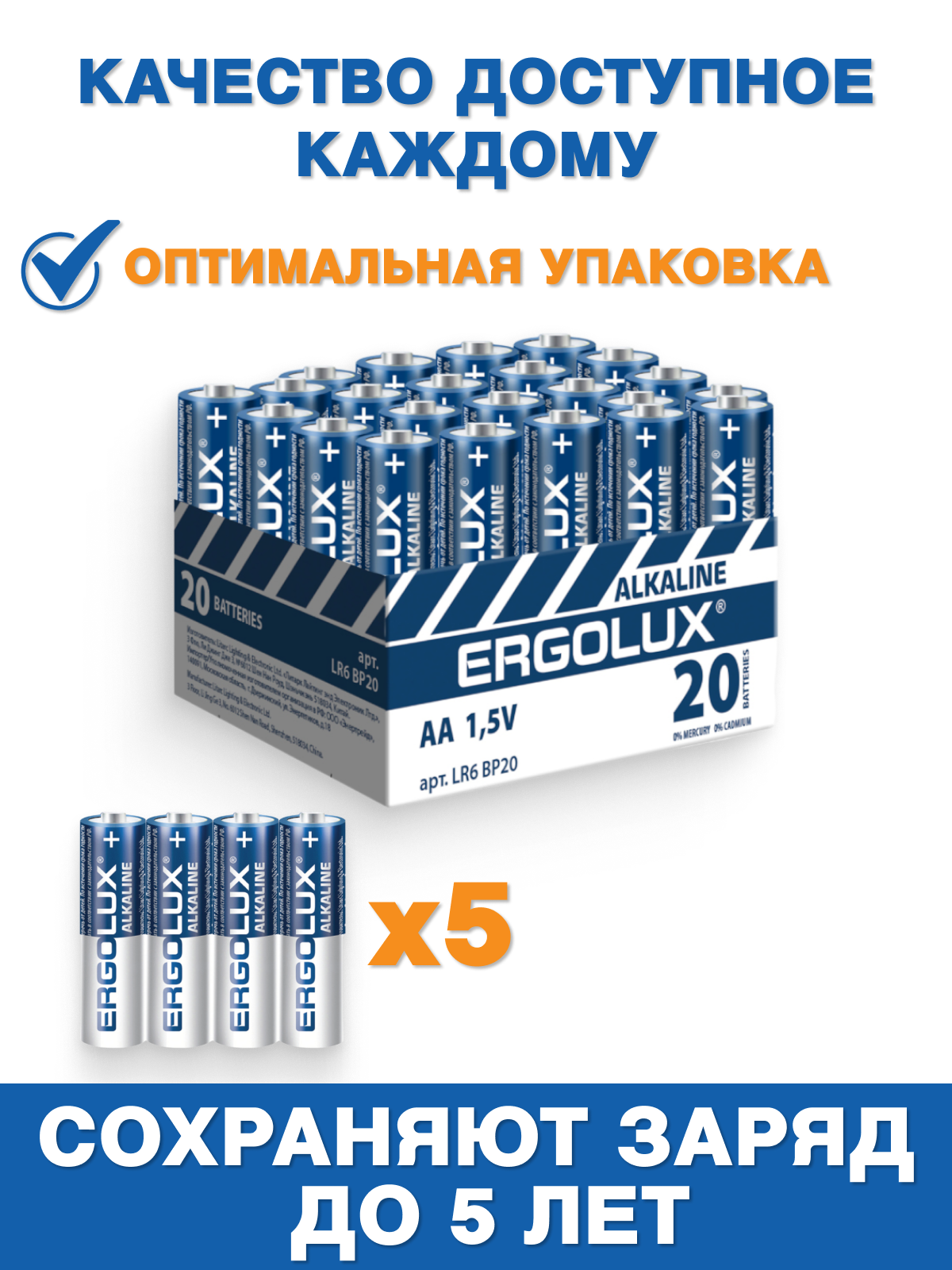 LR6 Alkaline BP-20 (промо, , батарейка,1.5В), ERGOLUX LR6 BP20 (1 упак)