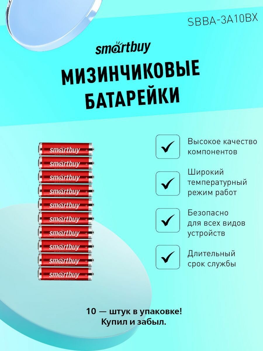 Smartbuy Sbba-3a10bx, Size"AAA", 1.5V, щелочной (alkaline) (уп. 10 шт)
