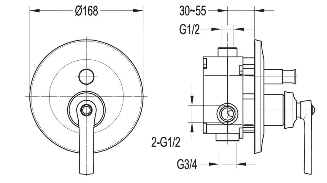 Встраиваемый двухпозиционный смеситель для душа CEZARES LIBERTY-F-VDIM-01