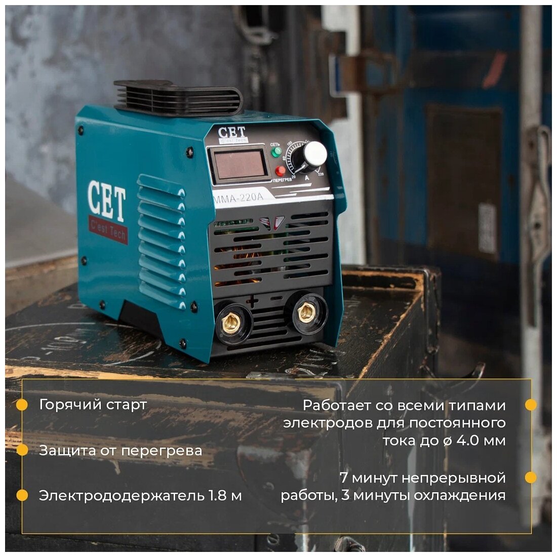 Сварочный аппарат инверторный / сварочный инвертор CET MMA 220A с дисплеем, электрод до 3.2 мм, 60% ПВ