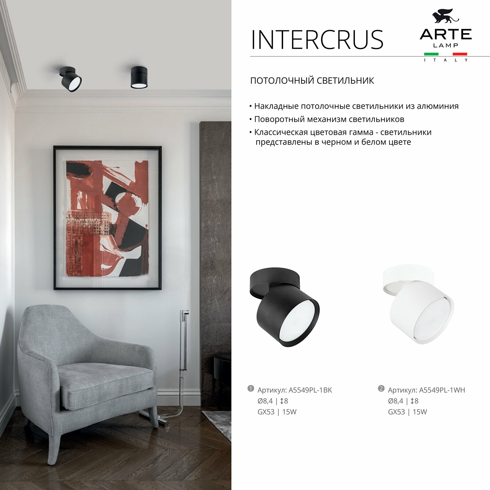 СохранитьНакладной спот Arte Lamp Intercrus A5549PL-1WH интересное: