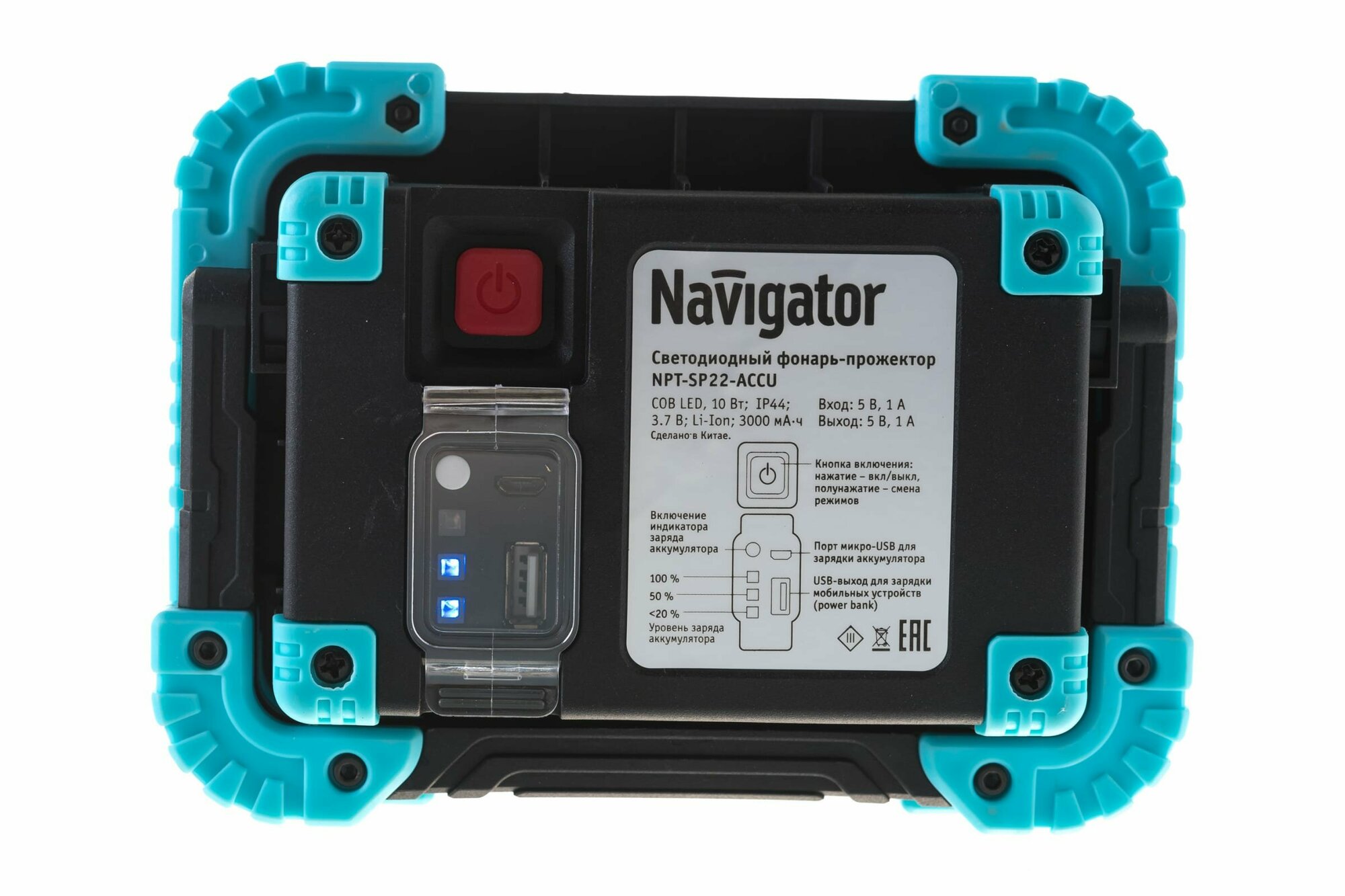 | Подробная комплектация | Фонарь-прожектор, провод USB, паспорт |