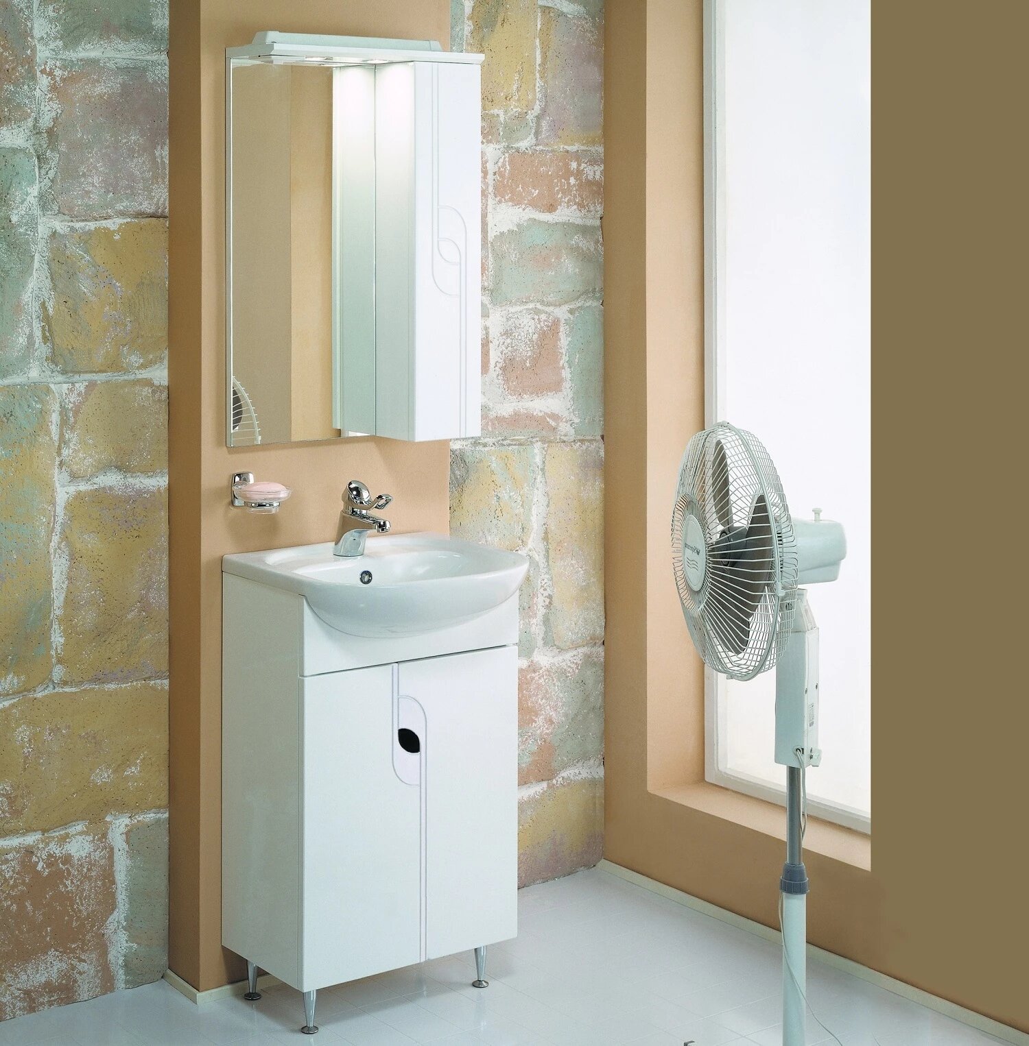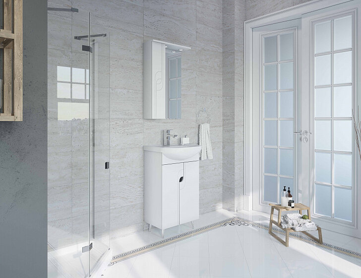 Тумба с раковиной для ванной Кристалл 50 белая.