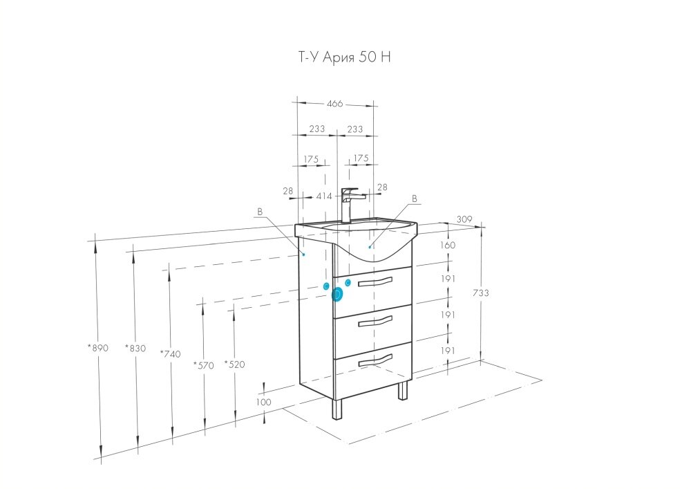 Тумба под раковину напольная с 3-я ящиками AQUATON Ария 50 Н 1A140201AA950