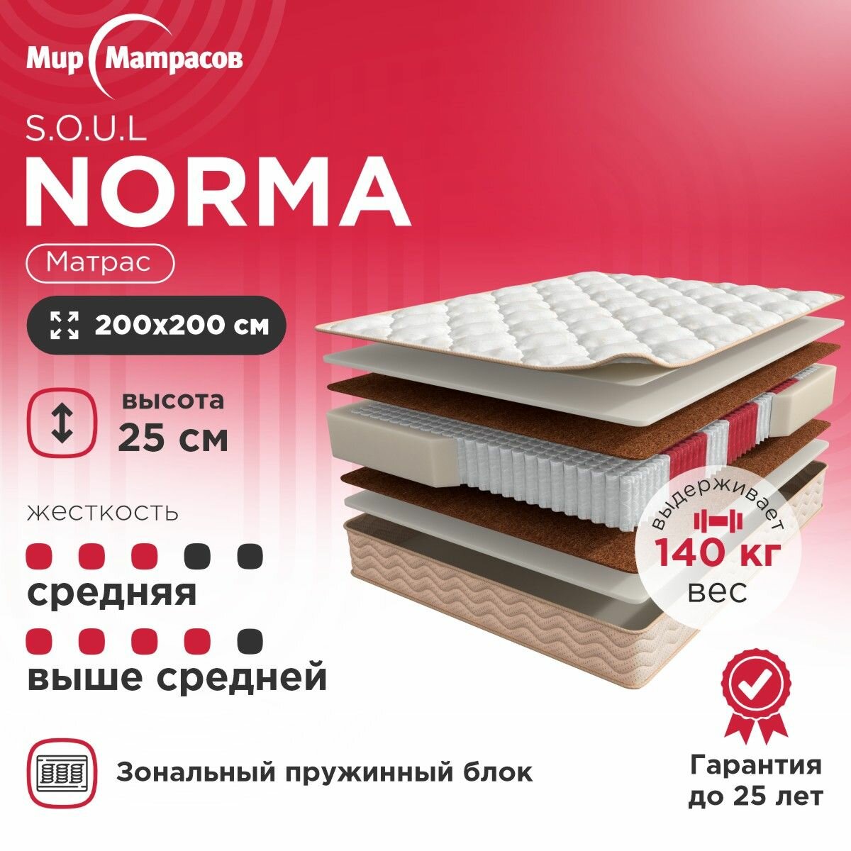 Матрас S.O.U.L Norma 200x200 ортопедический, двуспальный, пружинный, независимые пружины