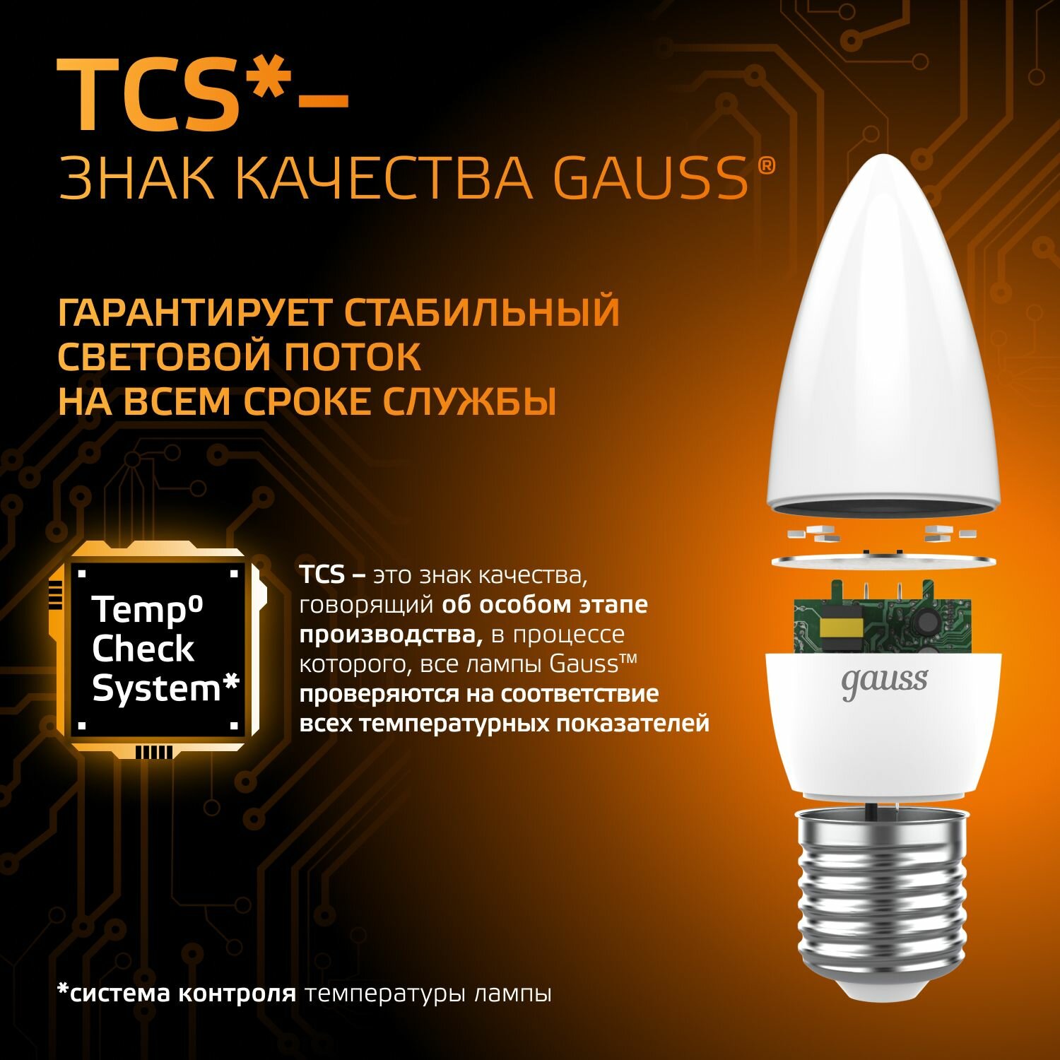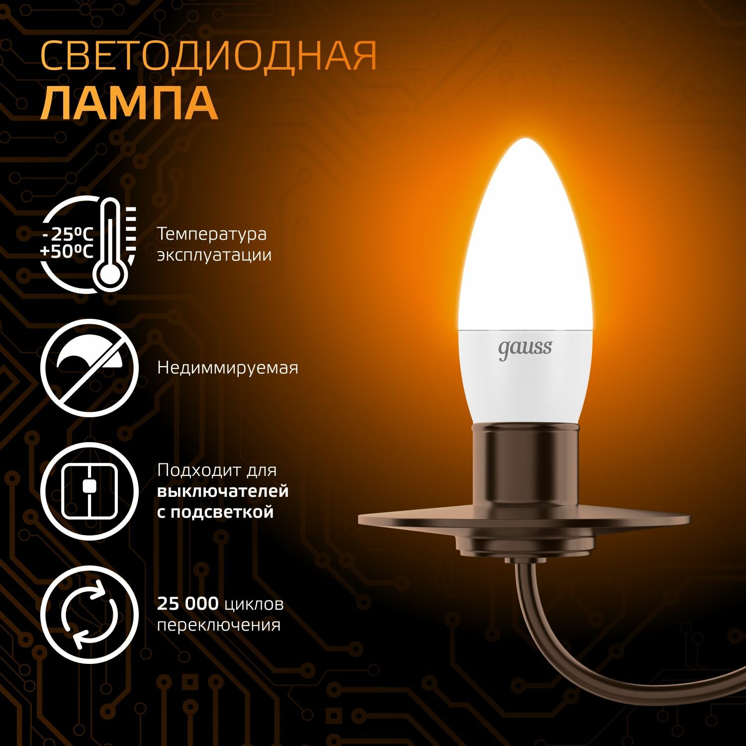 Купить Лампочка светодиодная E27 Свеча 9.5W теплый свет 3000K упаковка 10 шт. Gauss Black