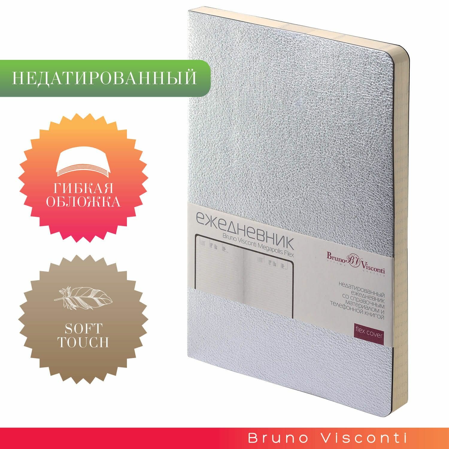 BrunoVisconti Ежедневник недатированный А5, 136 листов Megapolis Flex, обложка искусственная кожа, тонированный блок, серебряный