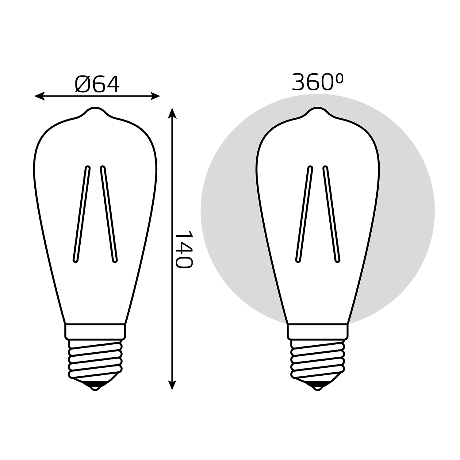 Лампа LED ST64 E27 6W Golden 2400К Gauss Filament 102802006