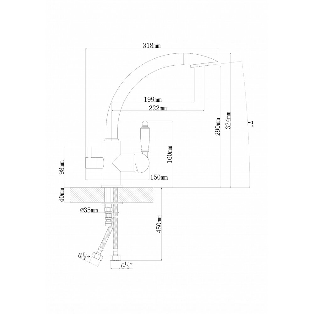 | Длина излива | 222 мм |