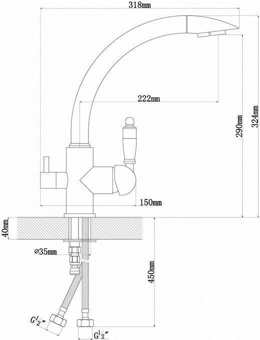 Смеситель Флорентина для кухни Шале FL графит под фильтр (333.27H.2113.720)