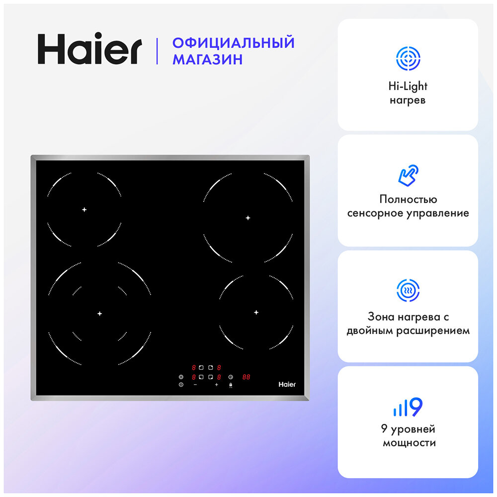 Электрическая варочная панель Haier HHY-C64DFB, цвет панели черный, цвет рамки серебристый
