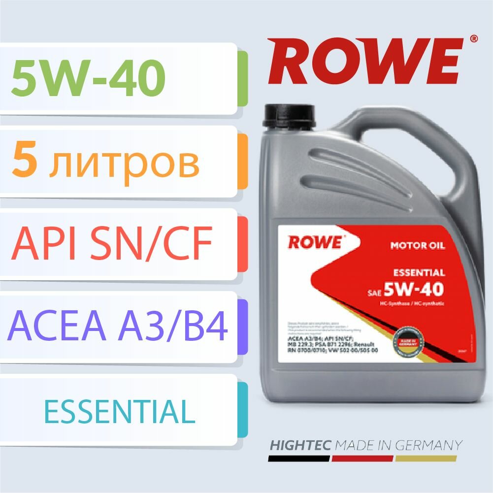 rowe essential sae 5w-40 (5 л.) acea a3/b4 api sn/cf rn0700/0710 vw502 00/505 00 mb229.3