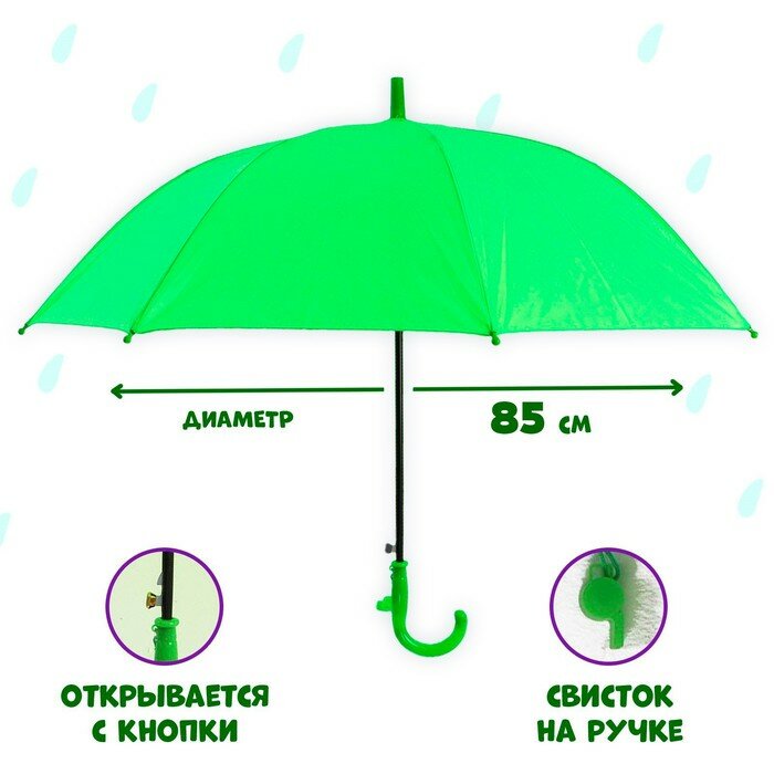 Зонт детский полуавтоматический d=86см, цвет зелёный, "Funny toys", материал металл