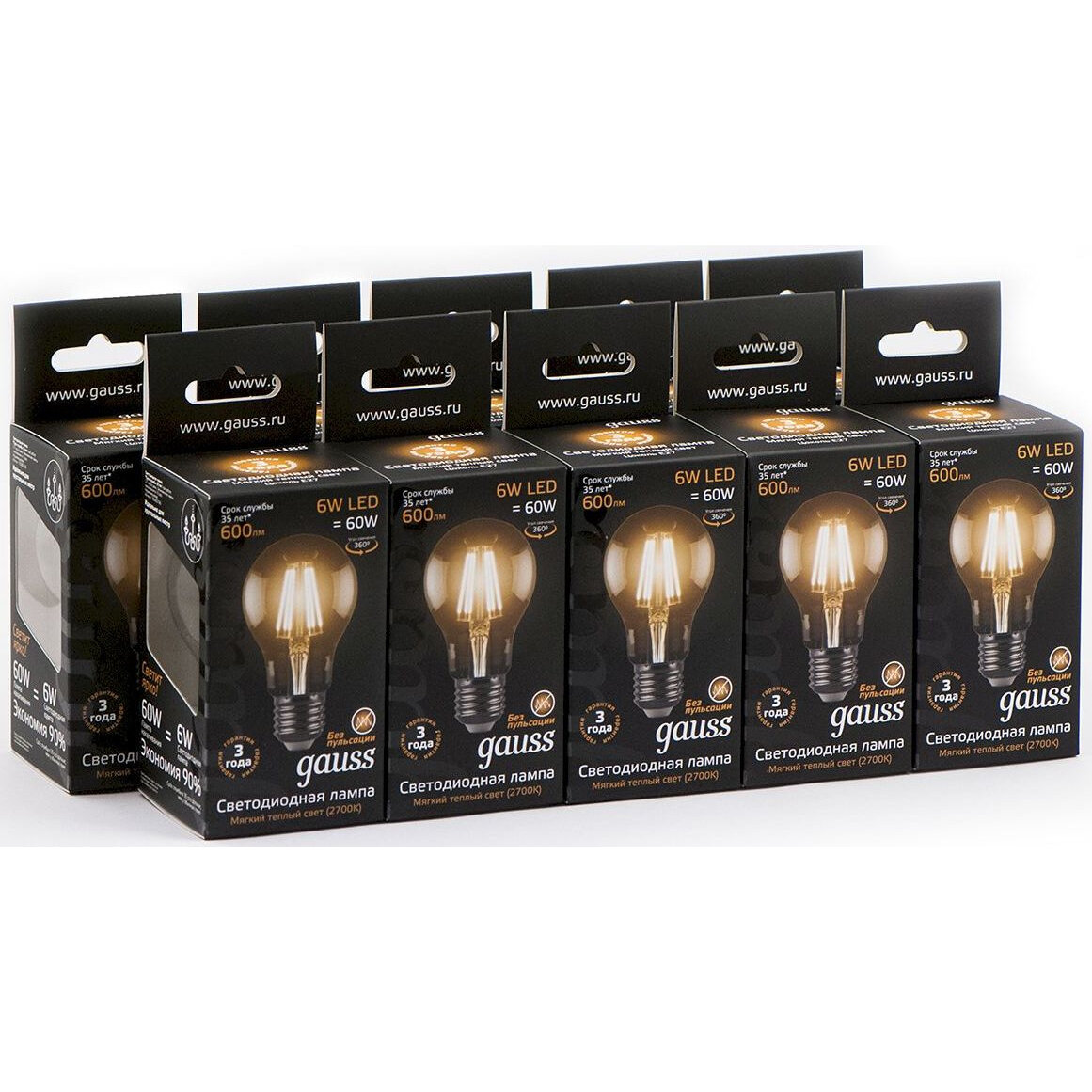 Упаковка светодиодных ламп 10 шт. gauss 102802106, E27, A60, 6Вт, 2700 К