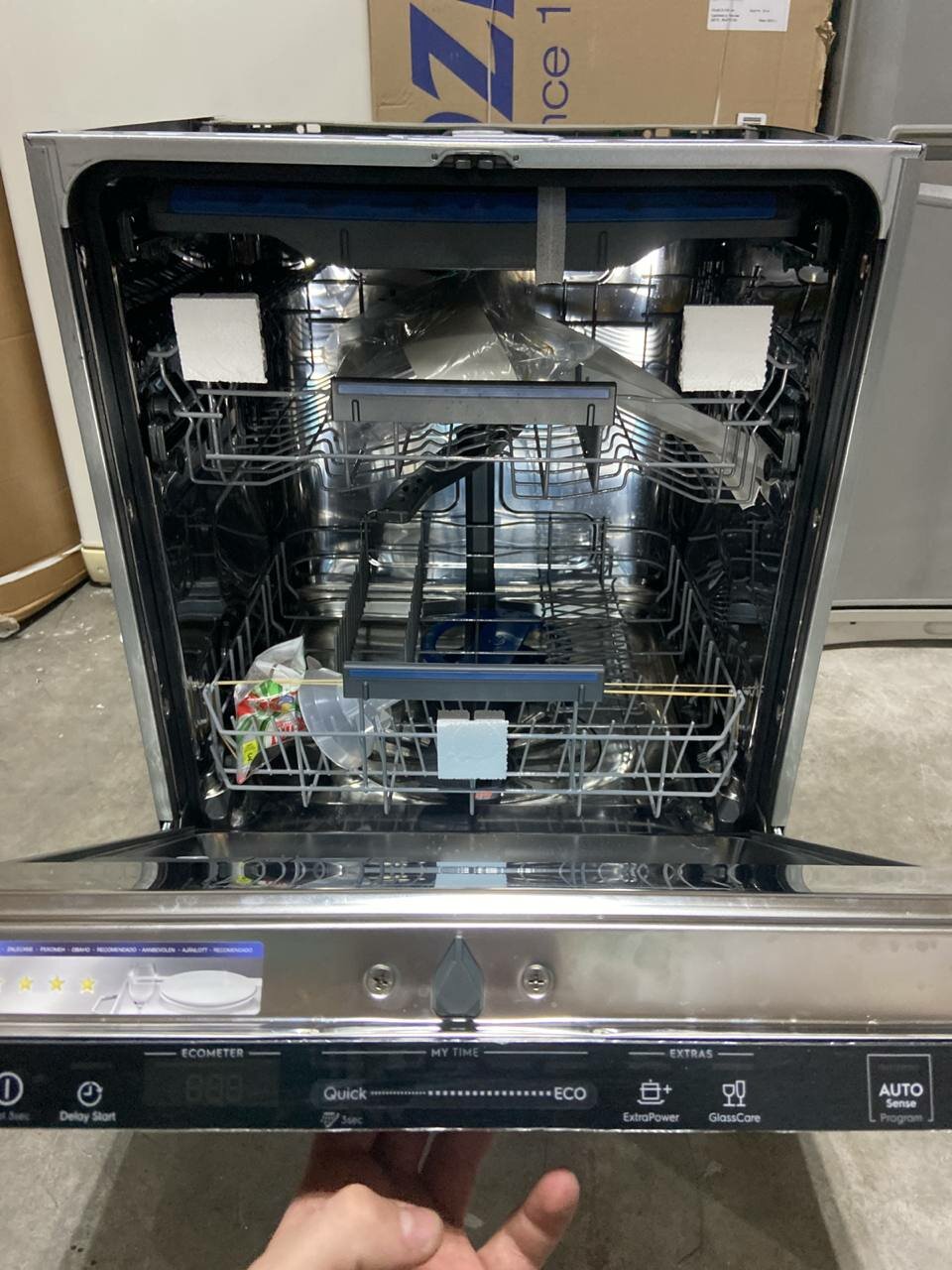 | Минусы: | После недели использования ПММ перестала открываться дверца по завершении цикла. В настройках ничего не меняли. Проверили, стоит "on", тем не менее не открывает. Как быть? |