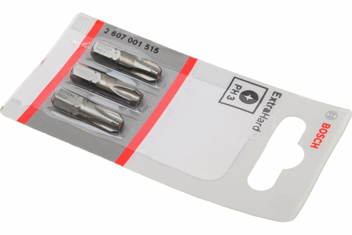 Бита Ph3 3 шт. (25 мм; Extra Hart, хвостовик шестигранный 1/4") Bosch 2.607.001.515