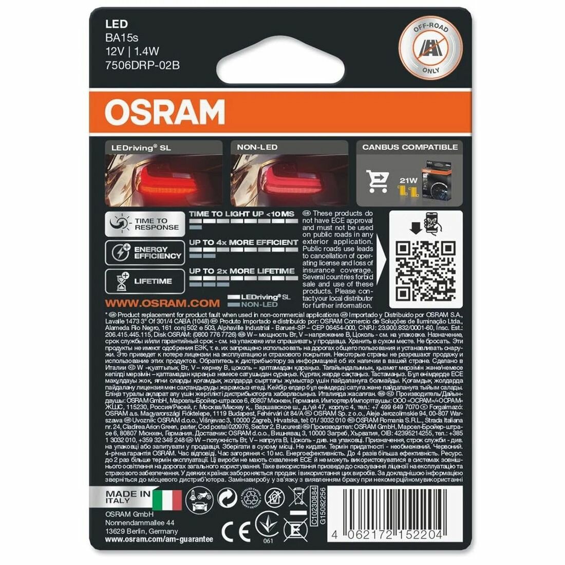 Osram^7506drp-02b Лампа Led P21w 12 1,4w 12v Ba15s Bli2 Блистер 2 Шт. Osram арт. 7506DRP-02B