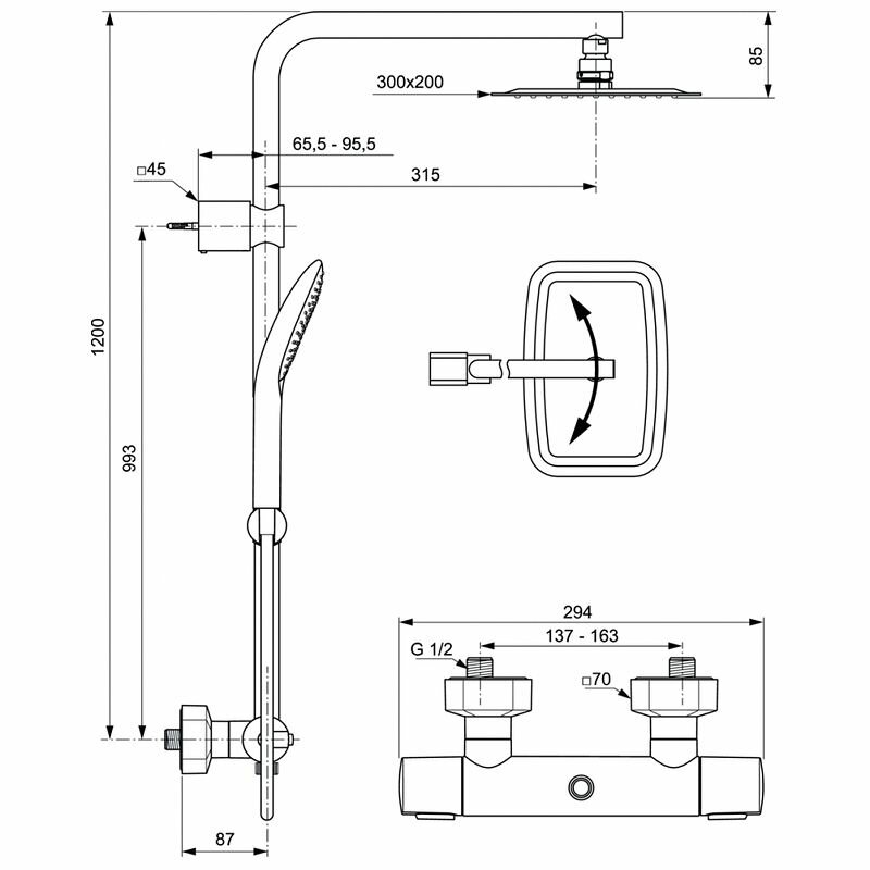 | Дополнительная информация | высота стойки для душа: 1200 мм; диаметр душевой лейки: 125 мм; длина верхнего душа: 200 мм; ширина верхнего душа: 300 мм |