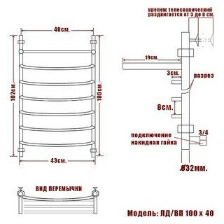 Полотенцесушитель водяной Ника Arc ЛД ВП 100х40 с полкой
