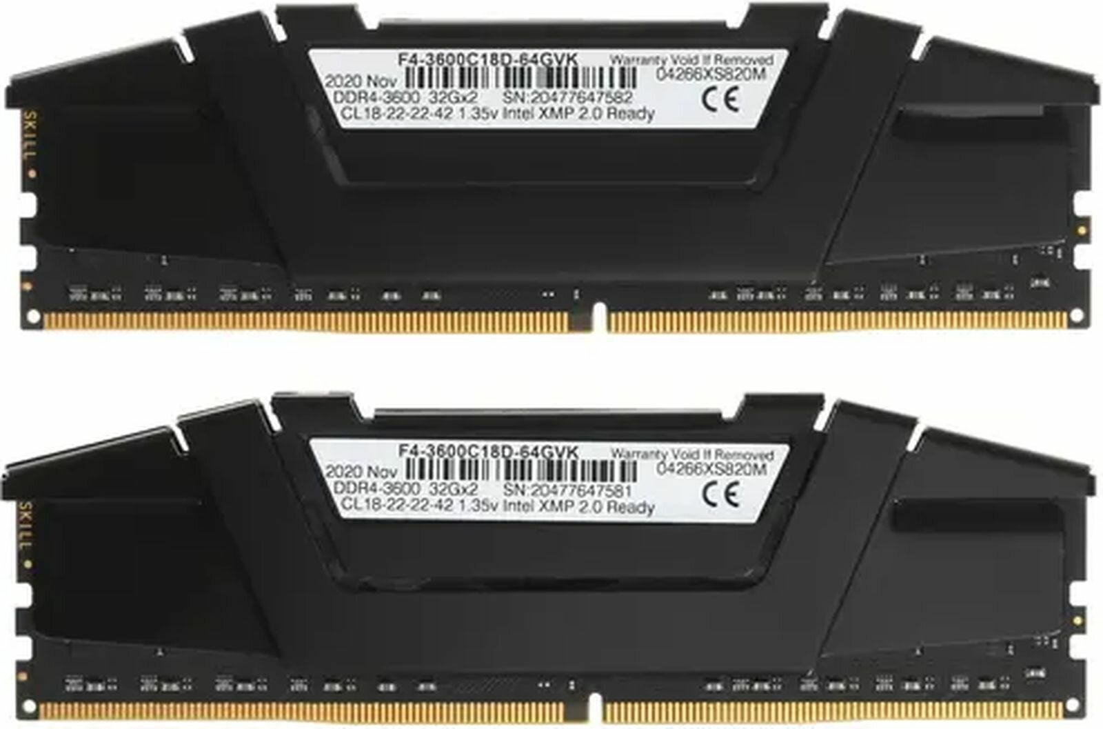 Оперативная память G.Skill F4-3600C18D-64GVK/32GB / PC4-28800 DDR4 UDIMM-3600MHz DIMM/в комплекте 2 модуля