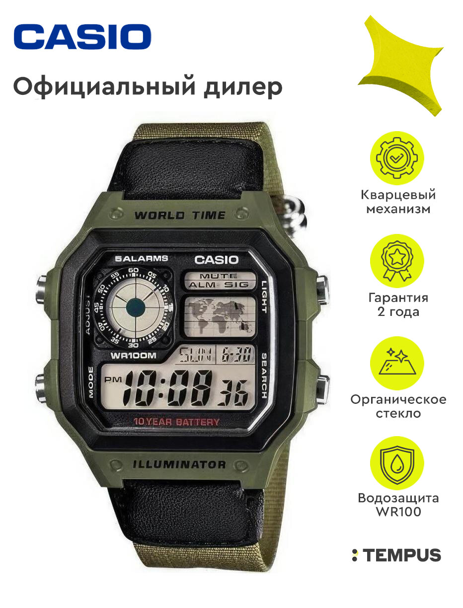 Наручные часы CASIO AE-1200WHB-3B, черный, хаки